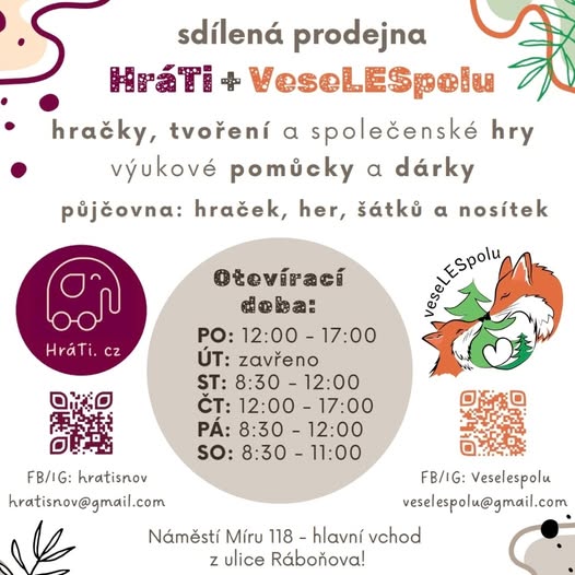 S holkami z HráTi jsme takové místo vytvořily, v Tišnově na náměstí stojí dům a v něm jsme se v dubnu 2025 s kamarádkami Denčou a Janičkou vytvořily prostor pro všechny zvídavé děti a jejich rodiče. Víme, že si v dnešní uspěchané době rodiny zaslouží kvalitní a hezké hračky, smysluplné hry a především pomůcky, které budou rozvíjet jejich kreativitu, logiku a také lásku k přírodě. Moc si přejeme aby nás naši zákazníci našli . Adresa je Náměstí Míru 118, Tišnov.