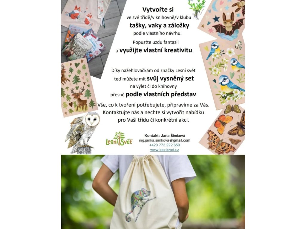 S nažehlovačkami značky Lesní svět zažijete spoustu zábavného tvoření. Vyberte si produkt, který bude přesně na míru vaši třídě či kolektivu a začněte tvořit. Vše pro vás připravím já. Trička, tašky, zástěry nebo pouzdra...s květinami, rybami, motýlky nebo čehokoliv z nabídky nažehlovaček Lesního světa.