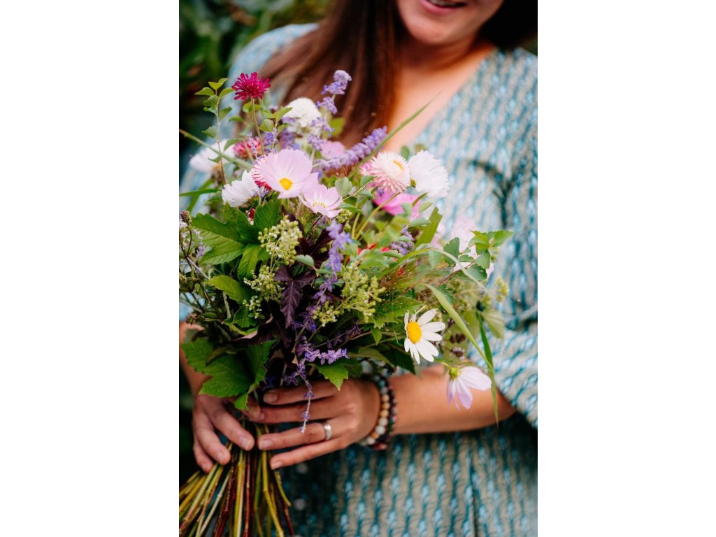 Workshop vázání kytice z lokálně a ekologicky vypěstovaných květin, dostupných v daný termín. Každý účastník kurzu dostane svůj kyblík s květinami, výplňovými větvičkami, nářadí a přehledně zpracovaný dokument, ve kterém najde informace o technice vázání i sortimentu použitých květin.