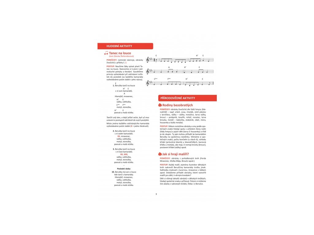 Součástí metodiky je také velký obraz louky, určený k vyvěšení ve třídě, a arch s menšími obrázky devíti živočichů z jednotlivých kapitol, kterémohou děti postupně umisťovat do odpovídajícího prostředí.