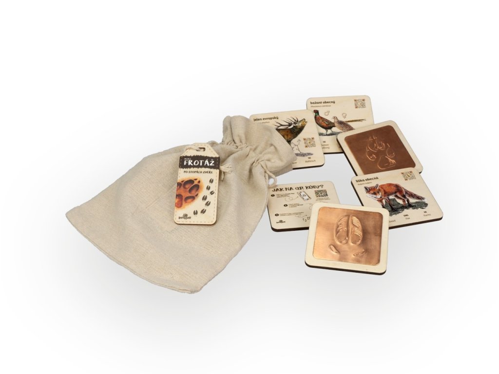 Frotážová sada je komplexní učební pomůcka určena pro vnitřní i venkovní výuku. Vhodná pro výuku cizích jazyků. Využívá QR kódy, které obsahují hlasy zvířat, básničky a další zajímavosti. Frotáže značky Lesní svět nesou ochranu průmyslového vzoru EUIPO.