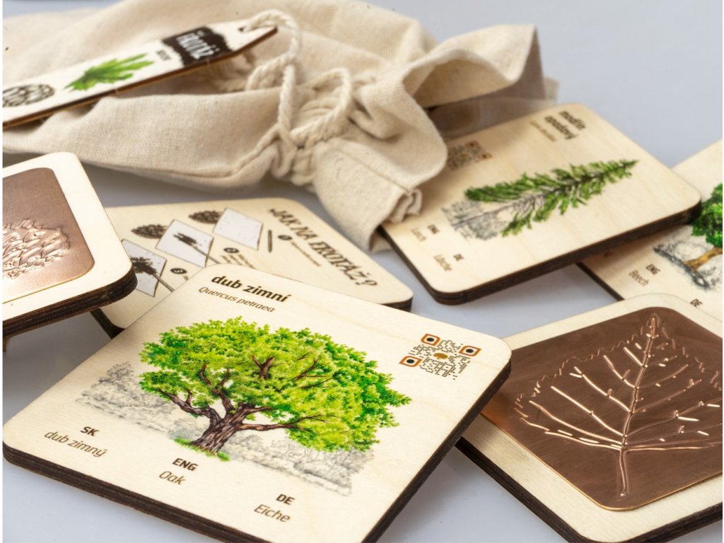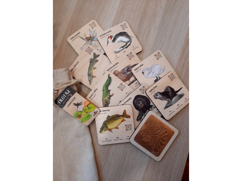 10 interaktivních destiček 9x9 cm s lučními motivy. QR kódy, multijazyčné provedení.