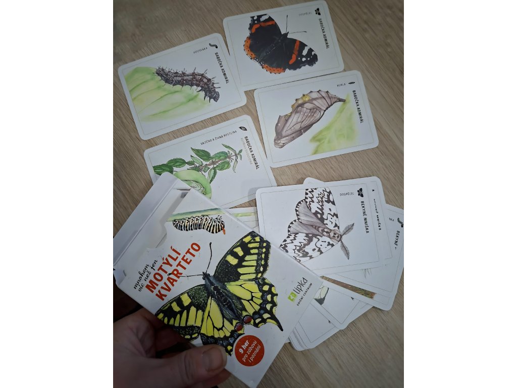 Děti si při hře přirozeně zapamatují jednotlivé druhy motýlů i jejich proměnu a zjistí, jak důležité jsou pro ně konkrétní rostliny. Kvarteto rozvíjí paměť, logické uvažování i vztah k přírodě a potěší všechny malé milovníky hmyzu.
