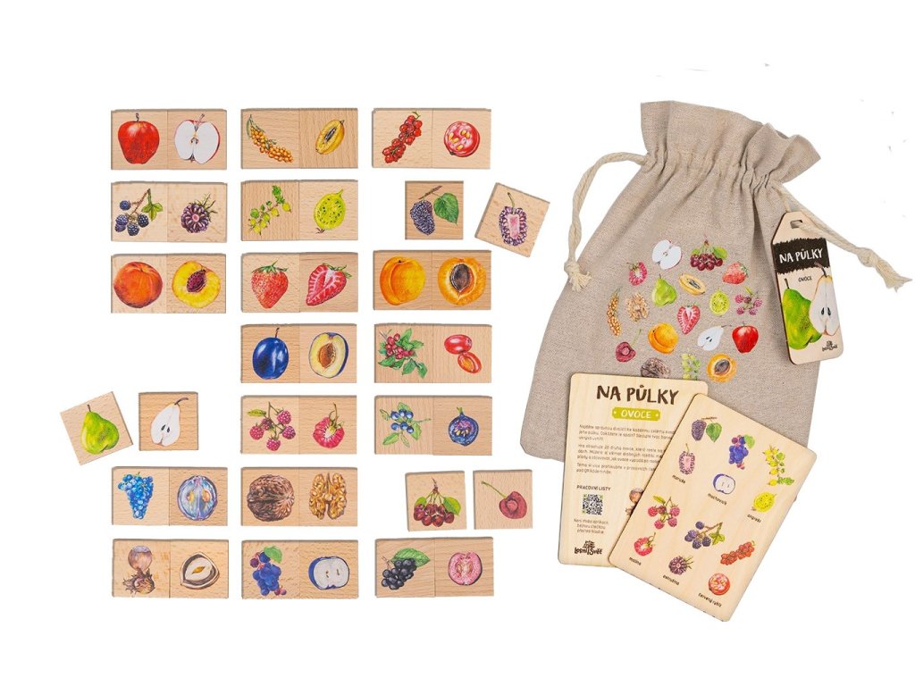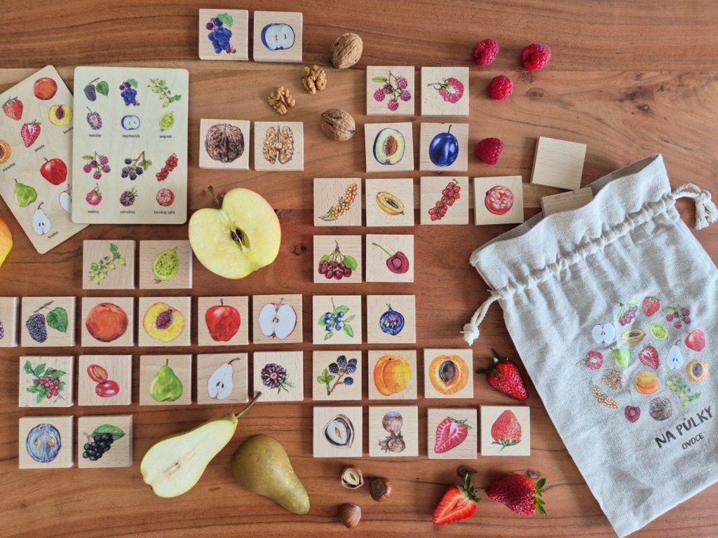 Druhy ovoce: broskev, hruška, borůvka, jahoda, jablko, švestka, meruňka, třešeň, ostružina, angrešt, červený rybíz, hroznové víno, malina, rakytník, muchovník, moruše, dřín, aronie, vlašský ořech, lískový ořech.