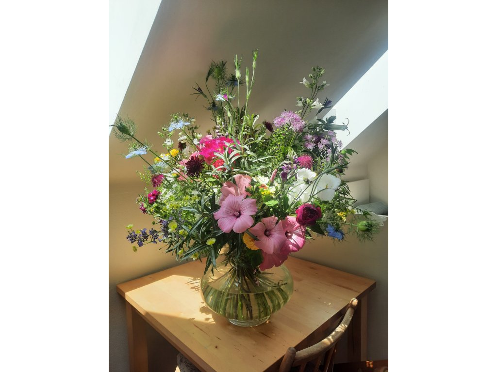 Kytice tvořená z toho nejkrásnějšího, co právě přináší sezóna. Každá je originál – vzniká podle aktuální dostupnosti květin a bylin na zahradě, či květinové farmě, od které květiny odebírám. Do kytice není možné předem vybrat druhy květin ani barvu. Máte možnost napsat přání do poznámky, ale není jisté, že se to povede, i přesto, že se budu se snažit Vám vyhovět.