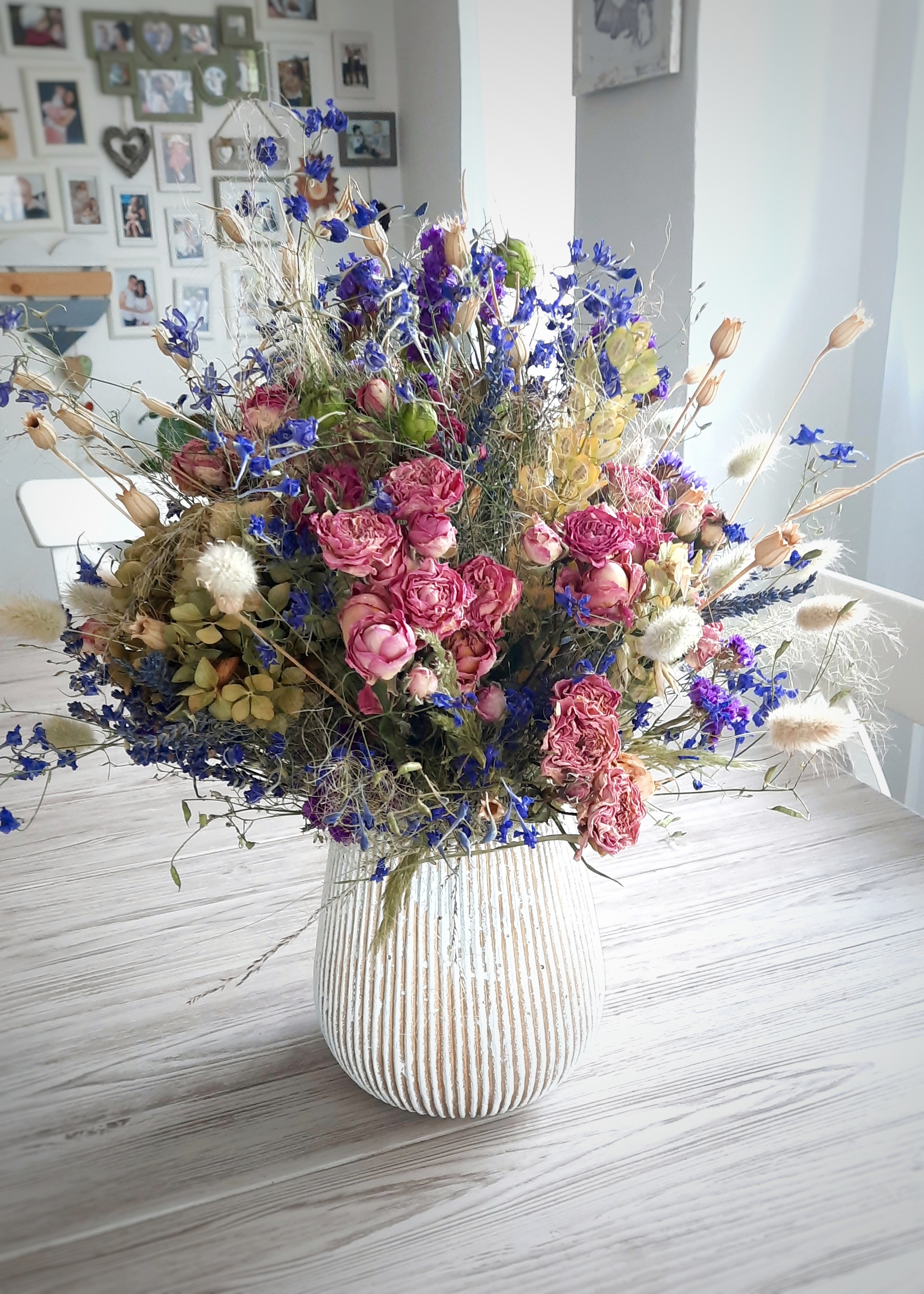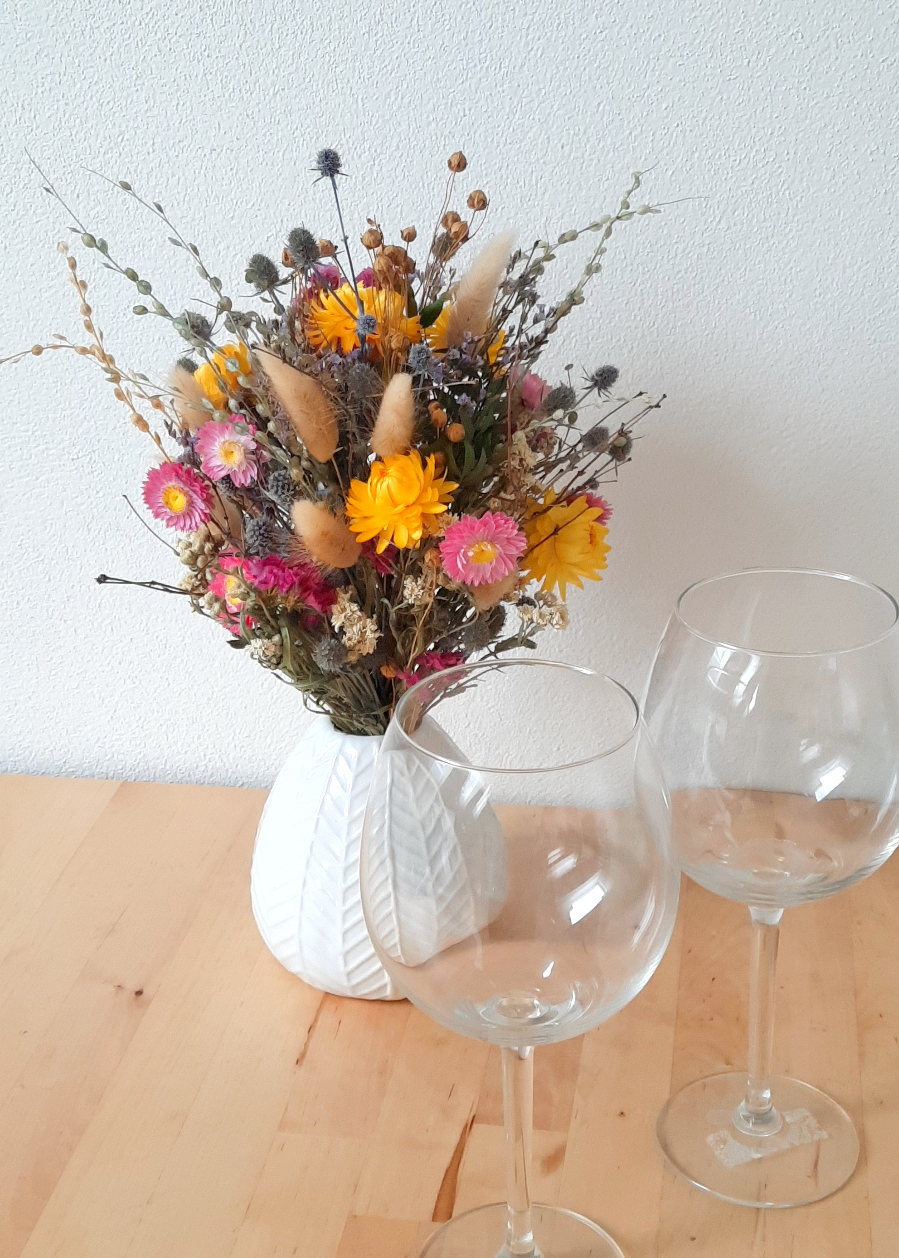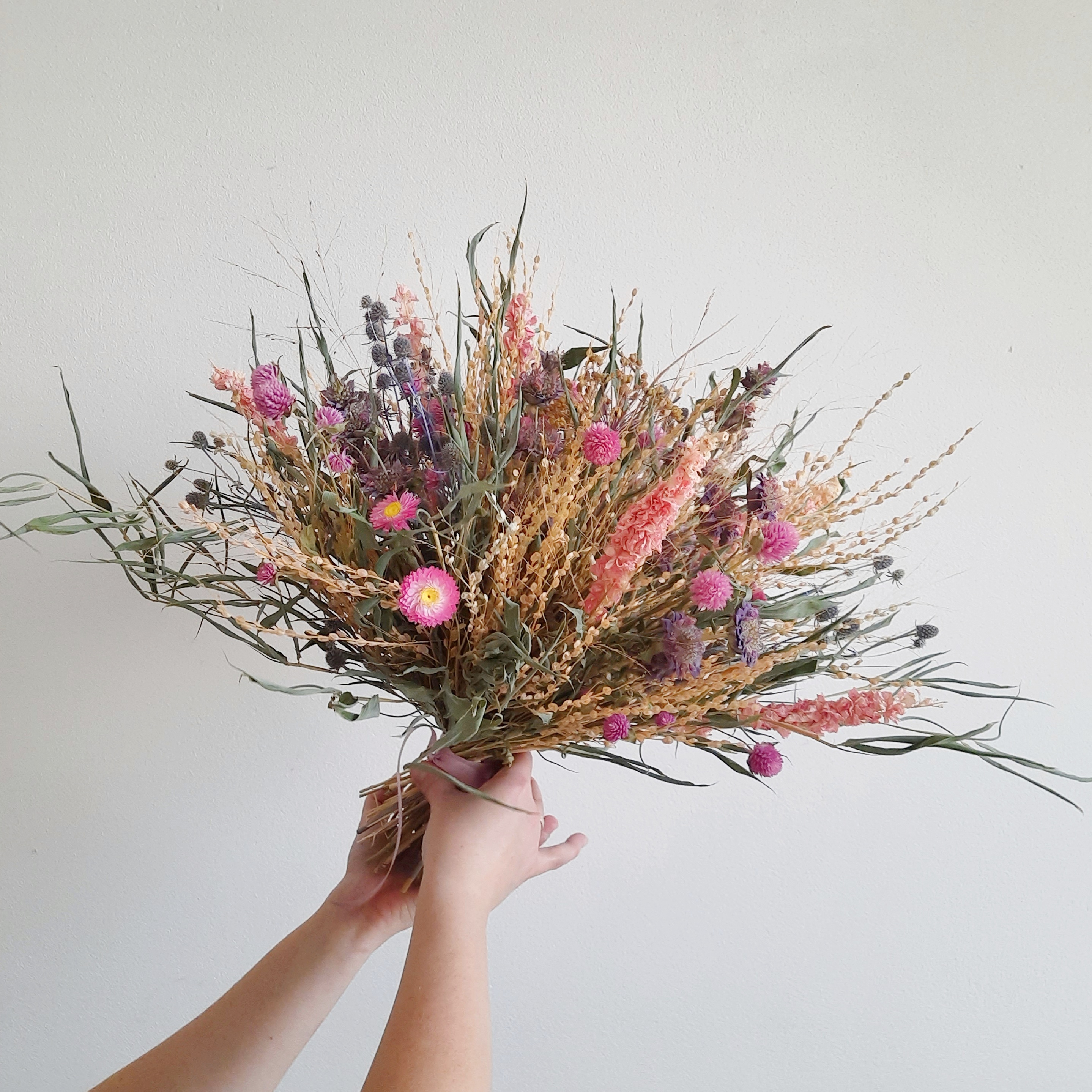 Všechny květinové dekorace tvořím z lokálně a sezónně pěstovaných rostlin. Dejte mi vědět a vytvořím vám kytičku ze sušených květin, které jsou k dispozici.